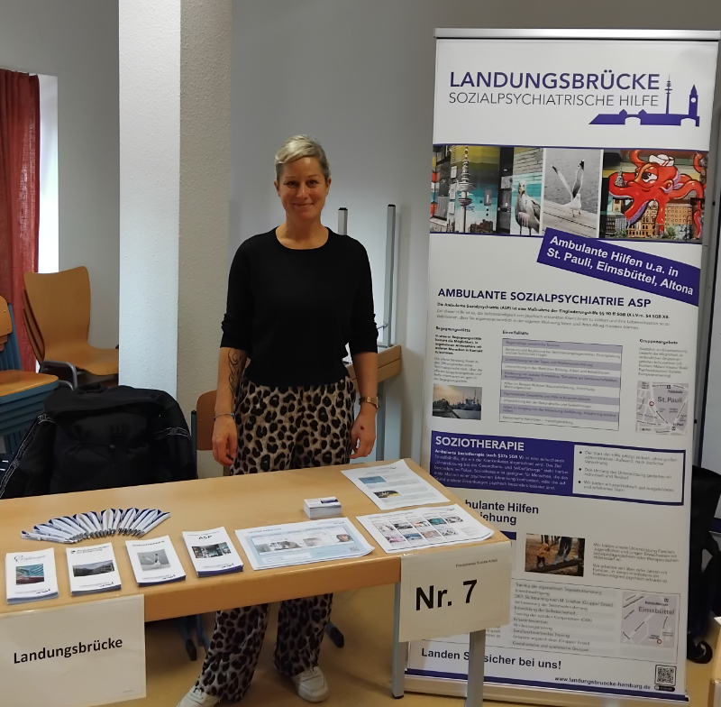 Am 05.11.2025 fand die jährliche Praxismesse Department Soziale Arbeit der HAW Hamburg statt, an der Lina Steinbrink im Namen der Landungsbrücke – Sozialpsychiatrische Hilfe als langjähriger Partner der HAW teilgenommen hat, um unsere Einrichtung zu präsentieren und darzustellen.
